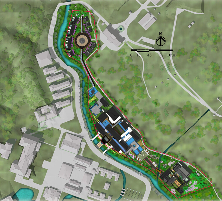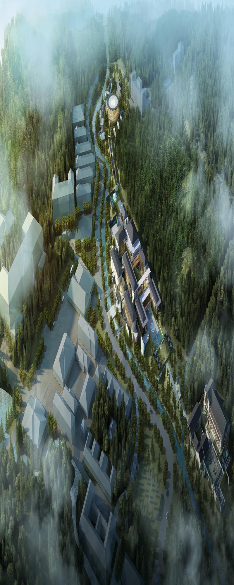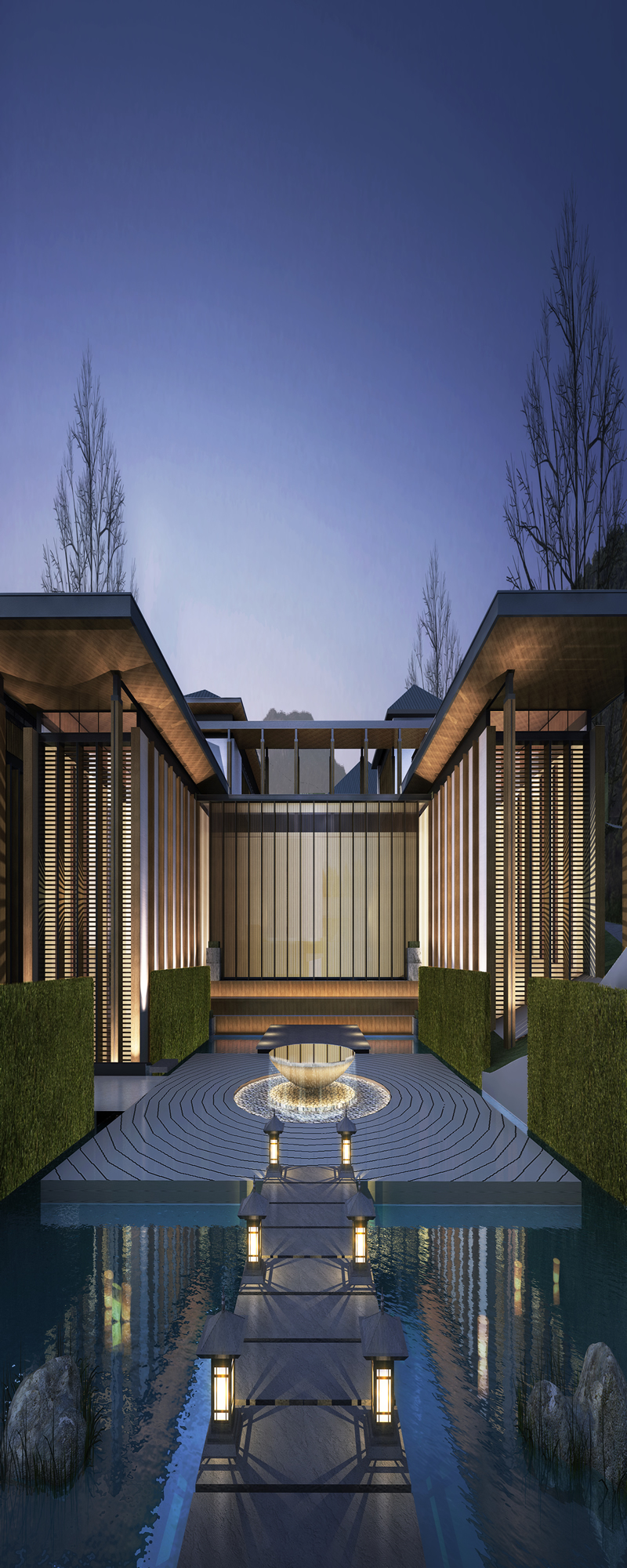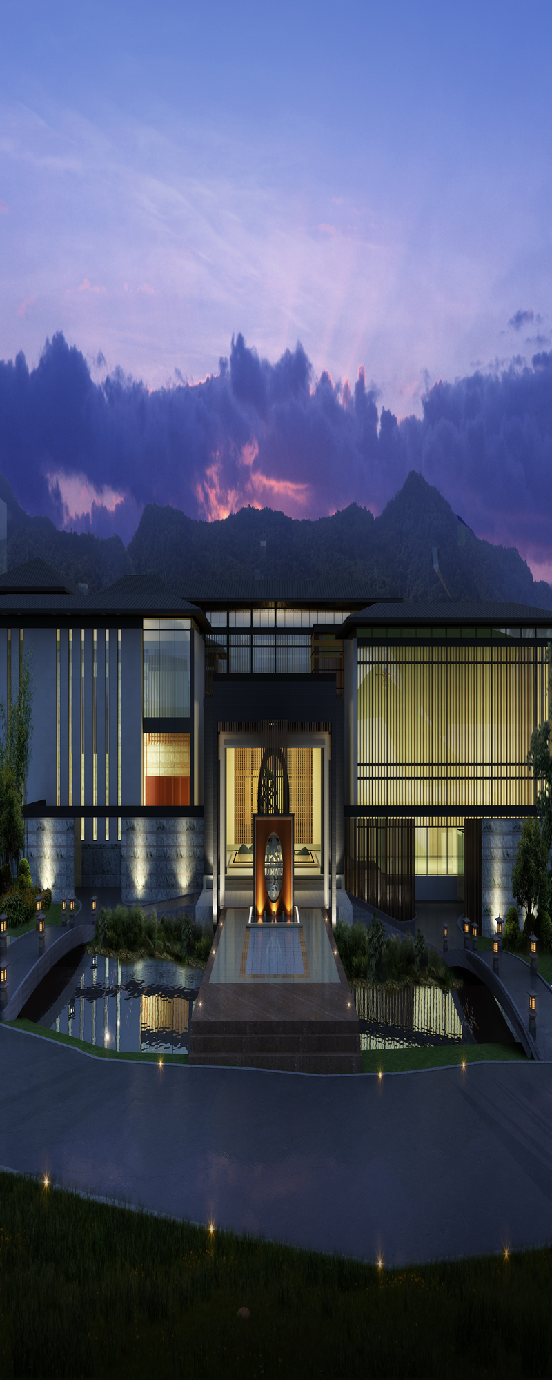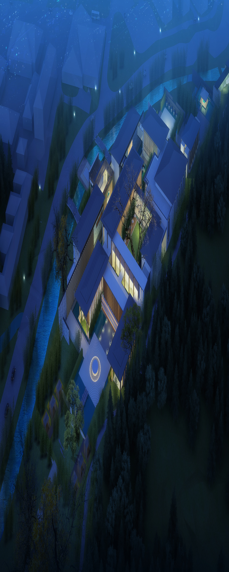 项目位于浙江省宁波市奉化区溪口镇西北雪窦山风景区,第五大佛教名山山脚,距溪口东互通立交约8km,基地西侧是浙江佛学院,通过甬金、沈海、杭甬等高速与周边市区联系。设计理念——“一忧一喜皆为心,一荣一枯皆眼尘”随心而行的设计,不是为物件、为空间,为事件而设计,它是为人、为人的精神情感而做的。一方水土、一座筑物、一个物件、一组空间、一群人物,他们均会产生对你我他的一种能量,一种激发生命的力量,这或许就是禅宗设计。