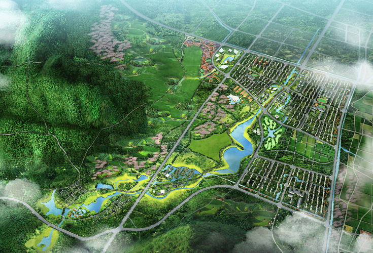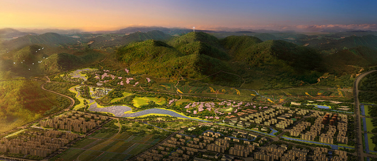 三面环山,是城市和自然环境的过渡区域,本区域的规划建设对
